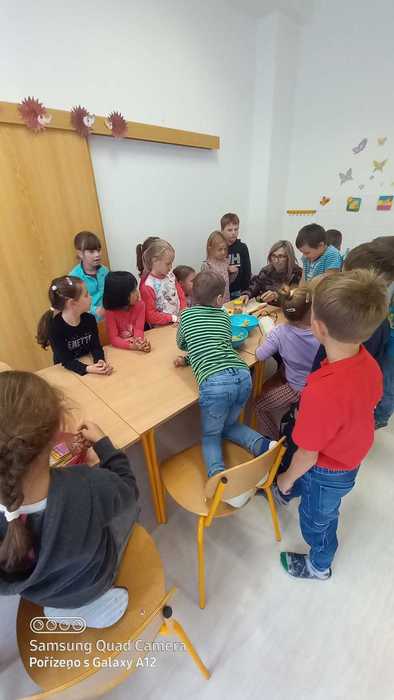 K podzimu neodmyslitelně patří sklizeň jablíček, proto jsme se rozhodli upéct s dětmi tradiční jablečný závin. Děti se do pečení hrnuly s nadšením, problém ale nastal při okrajování a strouhání jablek, neboť některé děti, s tím měly zkušenost poprvé. Další činnosti probíhaly jako po másle. Pečení si děti moc užily, a co teprve ochutnávka vlastní výroby. To byla mňamka :-D