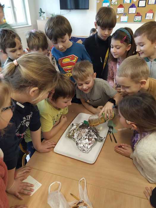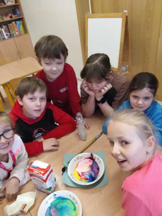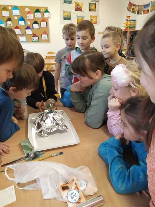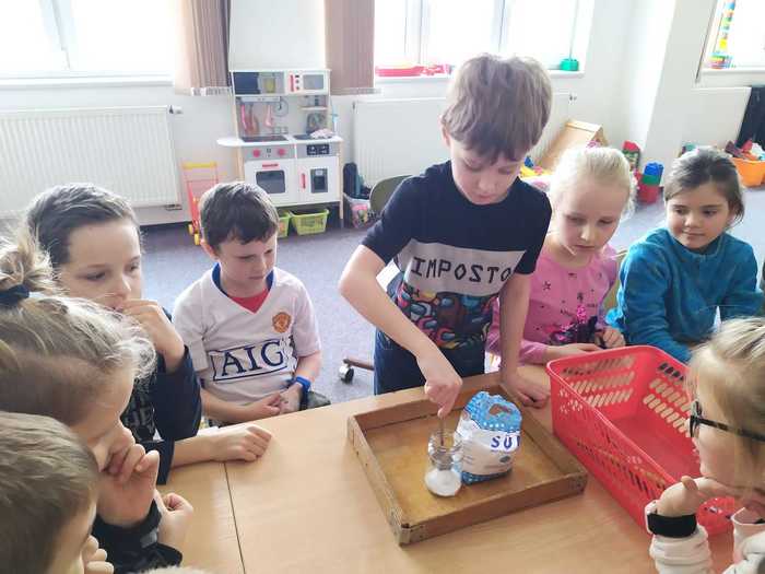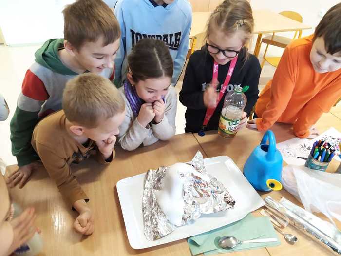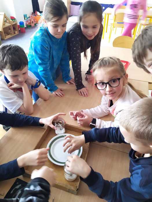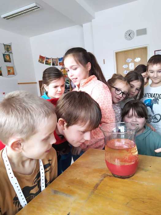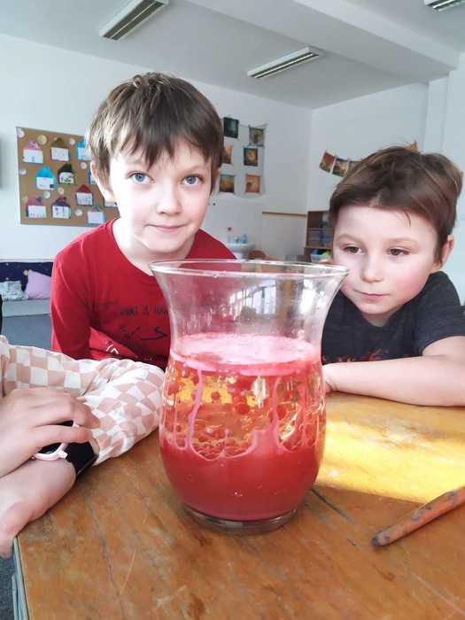 Poslední lednový týden jsme věnovali experimentování s běžně dostupnými surovinami. Vytvořili jsme lávovou lampu; pomocí barev, jaru a mléka se nám podařilo roztančit barvičky v talíři; s vodou a solí se pokusili vytvořit krápník a nakonec si vyrobili sopku s lávou. Děti si experimentování moc užily.