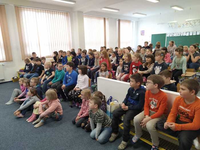 Velmi poutavým vyprávěním byly děti seznameny s první pomocí a mobilní aplikaci ZÁCHRANKA. Mohly si vyzkoušet masáž srdce, uložení do stabilizované polohy a fixaci končetin. Všechny děti prošly těmito nelehkými úkoly na výbornou, zapojovaly se do aktivit a předvedly dobré znalosti v první pomoci. Všem patří velká pochvala.